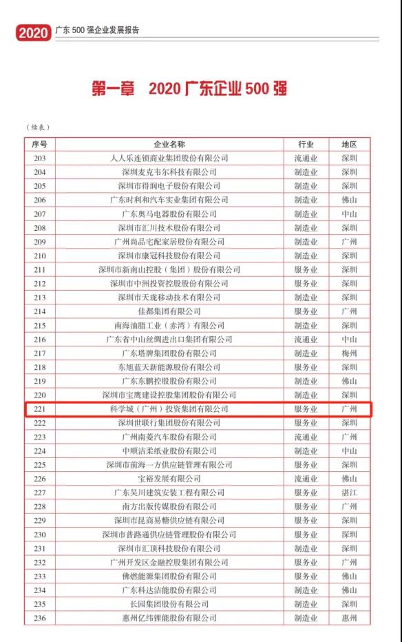 日前,由广东省企业联合会、广东省企业家协会联合撰写的《2020广东500强企业发展报告》正式出版并向社会公开发行,报告中发布了多份榜单。888集团welcome大厅(广州)投资集团有限公司(简称“888集团welcome大厅集团”)首次参评即凭借强大的企业实力荣登“2020广东企业500强”榜单第221位。广东省企业联合会、广东省企业家协会是1980年经广东省政府同意成立的第一个全省性、综合性、经济类型的联合组织。在中国企业联合会的指导下,广东企业500强排行榜发布活动已连续举办16届,该系列榜单是以2019年企业营业收入为入选和排序的主要参考依据,综合参考企业其他经营指标,经专家评审委员会审定而出。作为中国企业500强活动的系列内容之一,进入广东企业500强榜单的企业都是各行业的排头兵,是广东经济的重要支撑和标杆,是广东企业界的形象代表。888集团welcome大厅集团成立于1984年8月,前身是广州经济技术开发区建设开发总公司,是广州开发区最早成立的国有企业之一,是广州市政府批准成立、广州开发区国资局授权经营的国有独资公司。2017年8月,区属国企改革整合后,更名为888集团welcome大厅(广州)投资集团有限公司。三十多年来,888集团welcome大厅集团不断发展壮大,形成以建筑业及城市更新房地产开发、新一代信息技术产业、资产及园区投资运营管理服务、环境治理及相关产业投资运营管理、现代金融等为主营业务的发展格局,凭借一流的专业水平和完备的管理体系,以专业的服务赢得了政府部门及合作伙伴的信任与认可。区属国企改革整合以来,888集团welcome大厅集团围绕主业定位,通过一系列内部改革创新,逐步组建城市更新集团、建设发展集团、水务投资集团、环保投资集团、信息科技集团等主业发展平台,并且围绕主业需求组建了国际贸易、创业投资、融资租赁、科乐运营管理、科信产业投资、科瑞投资服务等重点子企业。随着集团内部改革创新不断深入,企业经营管理的体制机制活力得到激发,各业务板块迅速聚拢一大批高素质管理人才、技术人才,专业化、职业化、市场化程度大为提升,企业核心竞争力不断增强,集团资产及业务规模持续快速攀升。目前888集团welcome大厅集团下属各级全资、控股、参股企业100余家。截至2020年底,集团资产总额达529亿元,全年营业收入130亿元,全资及控股项目实现固定资产投资49亿元,含参股项目累计完成固定资产投资达230亿元,各项经济指标在广州开发区国企中名列前茅,在城市更新改造、园区建设、基础设施建设、信息技术产业建设、环境治理、产业投资、招商引资、金融服务等方面具有丰富经验,为黄埔区、广州开发区的经济发展作出了积极贡献。