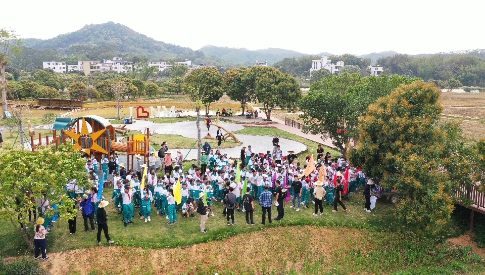 当天上午,200名学生们穿着整齐的服装,精神抖擞地齐聚在黄埔迳下村美丽田园。在现场指导老师的带领下,学生们分组团建,先后进行了稻田课堂学习,体验插秧和竞赛插秧,田园无线电测向寻宝、田园花海竞赛“猎狐”等项目活动,从中既了解到水稻种植以及现代农业设施、现代农业产品相关知识,又亲身体验到插秧的技巧、要领;体会到农活的辛劳,又感受粮食的来之不易,明白“粒粒皆辛苦”的含义。